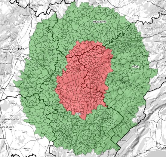 La quatrième zone réglementée (ZR4) couvre une partie des départements du Jura, du Doubs, de Côte-d’Or, de la Haute-Saône et de la Saône-et-Loire. Elle a été mise en place le 11 octobre, suite à la confirmation d’un foyer dans la commune d’Ecleux (Jura), où deux autres foyers ont été détectés dans les jours suivants.