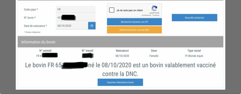 L’attestation devrait être modifiée prochainement ( suppression du taux de vaccination qui est une donnée évolutive). Pour rappel ces attestations ne valent pas LPS mais permettent de s’assurer de l’enregistrement du statut vaccinal de bovins devant être commercialisés.