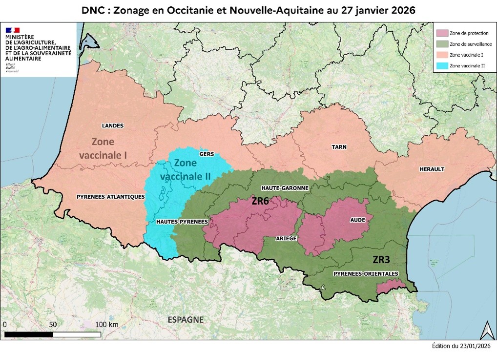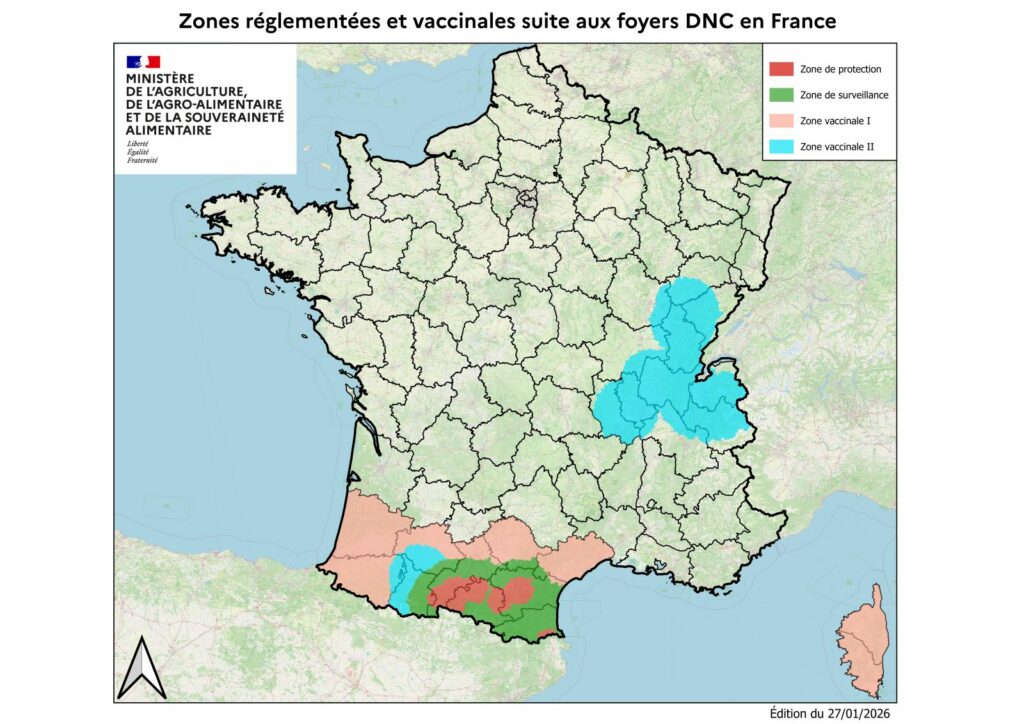 Levée depuis ce jour 02/02/26 de la zone de protection liée au foyer du 31; aussi l'ensemble du département 65 est désormais en zone de surveillance ou zone vaccinale II.